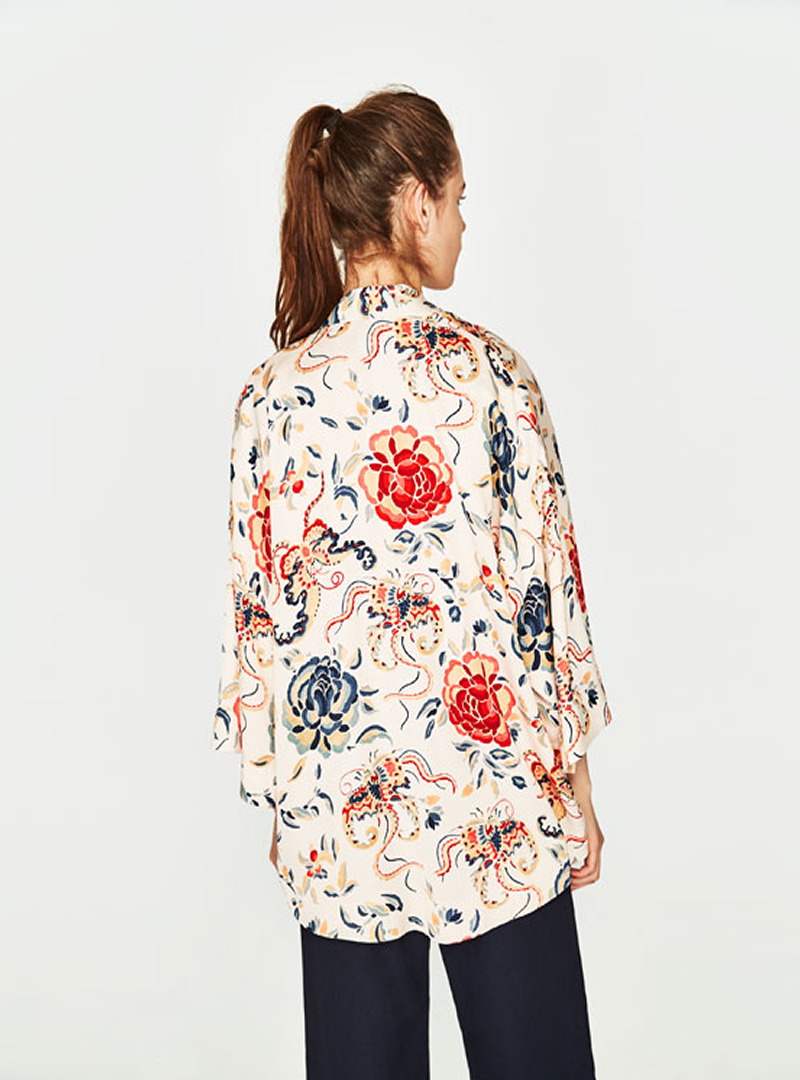 Bring your wardrobe into full bloom with this spring-ready floral print blazer. Features cool boxy shape with unfastened front and three quarter length sleeves.